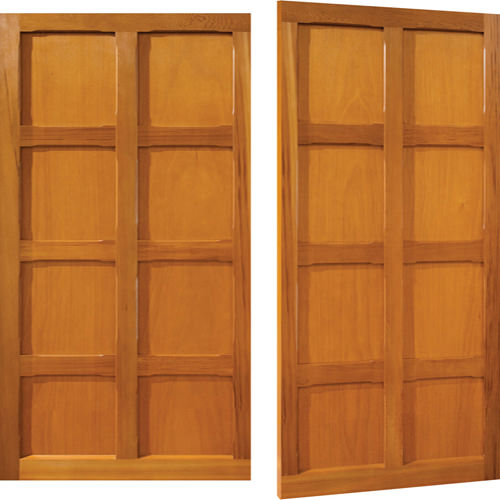Woodrite Appley timber side hinged garage door, part of the York range. A superior crafted timber door which is base coated for on-site finishing as standard but also available in twelve factory pre-stained finishes: Light Oak, Antique Oak, Chestnut, Mahogany, Walnut, Burnt Oak, Teak, Pale Oak, Silver, Silver Grey, Ice Silver & Slate Grey. The door includes all of the necessary ironmongery with options on contemporary, classic or traditional fittings. Timber sub frames are also available as an option.
