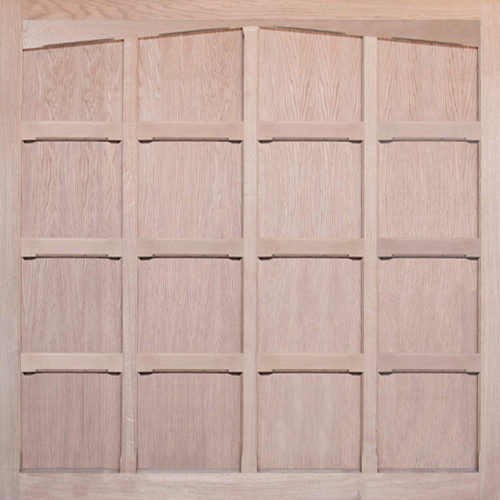 Woodrite Oakhampton timber up and over garage door, part of the Monmouth range. A superior crafted oak timber door which is base coated for on-site finishing as standard but also available in a choice of 12 factory pre-stained finishes. Timber sub frames or a steel maintenance free option are also available. This door is supplied with clear or stippled windows with a plain, square or diamond lattice leading option.