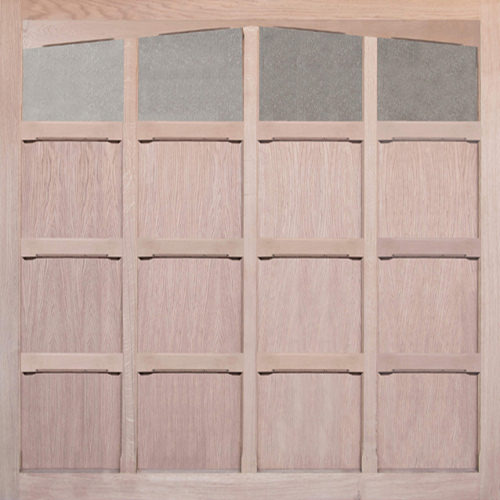 Woodrite Oakhaven timber up and over garage door, part of the Monmouth range. A superior crafted oak timber door which is base coated for on-site finishing as standard but also available in a choice of 12 factory pre-stained finishes. Timber sub frames or a steel maintenance free option are also available